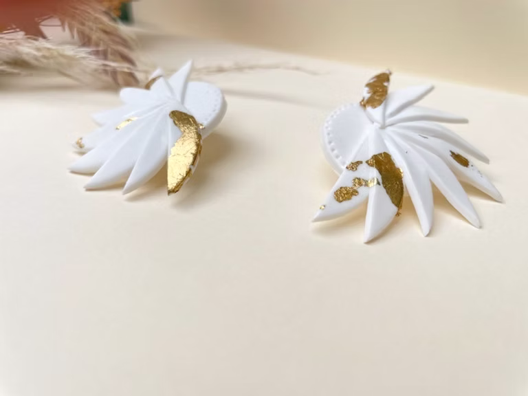 Goujons en  laiton plaqué or (plaquage or fin 18  carats) – Argile polymère – Feuilles d’or